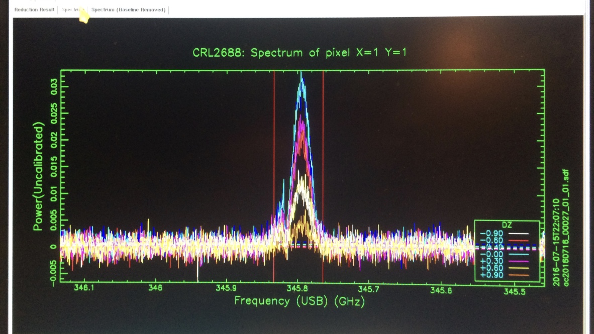 . . and the pointing software derives the line intensities at each of the 5 positions and fits a Gaussian in both directions to determine the location of the peak line strength